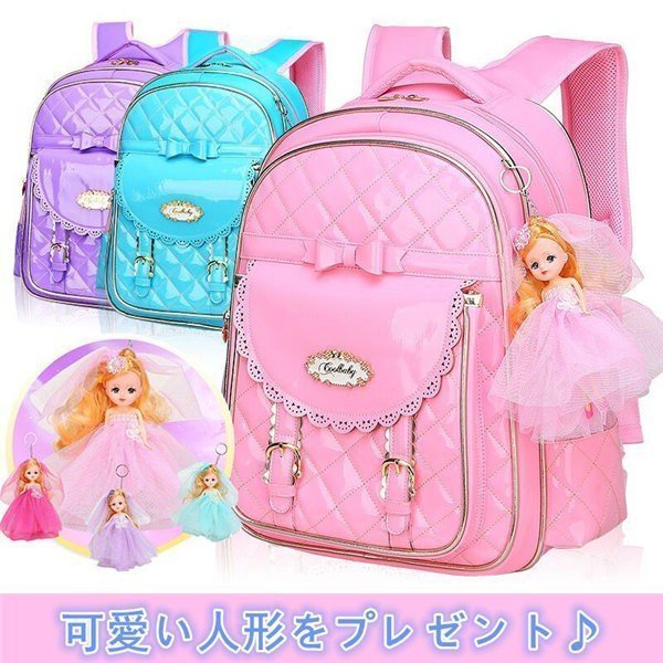 キッズ軽量可愛い小学生小学校人形付通学通園子供用ジュニア女の子リュックサックキッズバックバックパックリュックデイパック