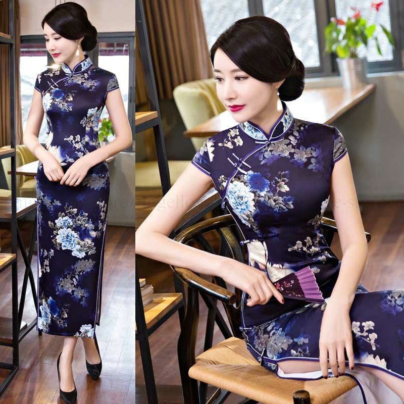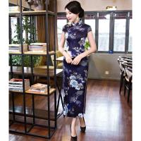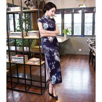 チャイナドレスロング丈チャイナドレス花柄プリントチャイナ服スリットチャイナドレスパーティーイブニング大きサイズ優雅着痩せ