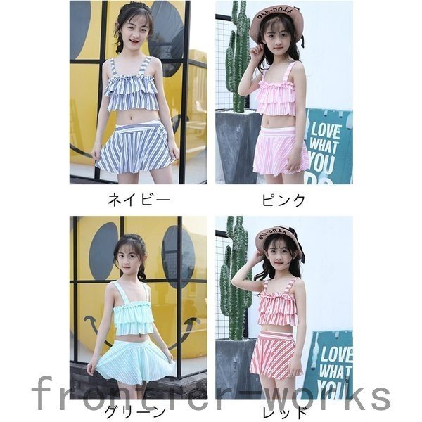 【セール】DBEEXEKY6007キッズ水着 女児用 女の子 セパレート セット 子供水着 トップス+パンツ ストライプ 110cm 120cm 130cm 14