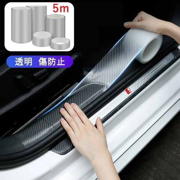 スカッフプレート シール 5m 車 ドア 傷防止 サイドステップ 汎用 カーボン調 ブラック 黒 透明 プロテクション フィルム 内装 外装