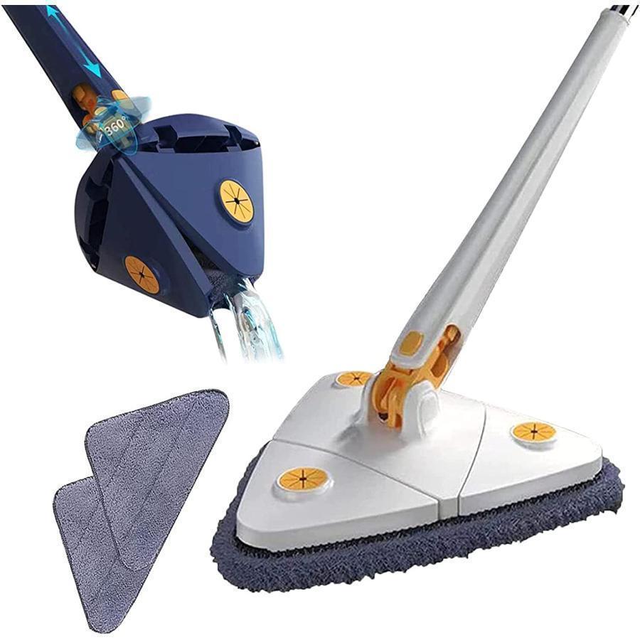 多機能三角モップ ?伸縮式三角モップ?360°回転調節可能なクリーニングモップ?多機能清掃モップ 手動水絞り機能付き? モップ布 2 枚付き