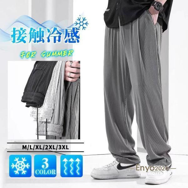 ジョガーパンツ ワイドパンツ メンズ 夏服 ゆったり アイスシルク 接触冷感 ひんやり 薄手 無地 ドレープ ロング丈 涼しい スポーツ 速乾
