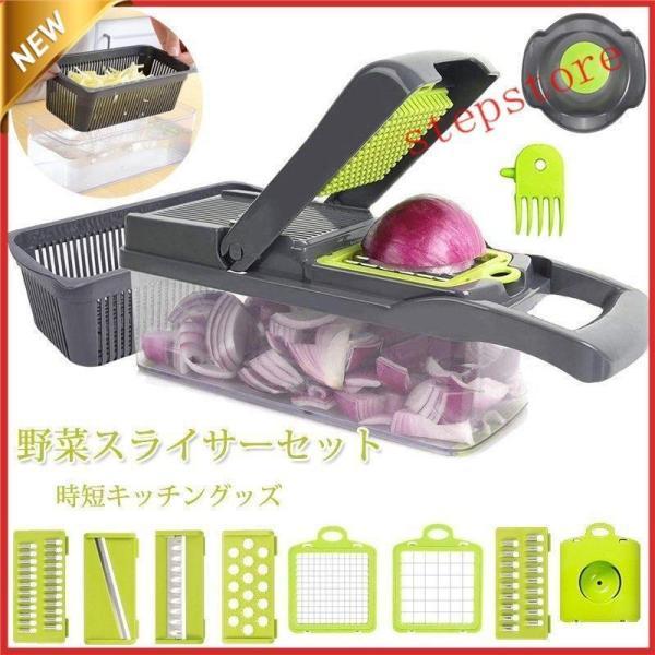 スライサー セット 野菜カッタ 1台9役 みじん切り 千切り薄切り水切り皿 卵白セパレーター カッター 果物 調理器セット スライス 安全ホルダー付き