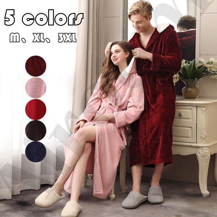 カップル バスローブ フード付き レディース メンズ ルームウェア パジャマ もこもこ フランネル ナイトガウン 男女兼用 厚手 暖かい 部屋着