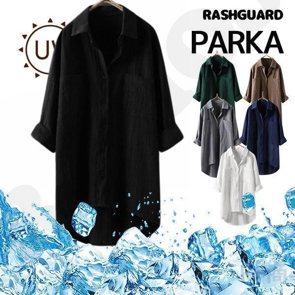 ロングシャツ ラッシュパーカー シャツ UVカット 長袖 UVパーカー ブラウス 薄手 ロングパーカー 通気 ひんやり 紫外線対策 夏 日焼け防止