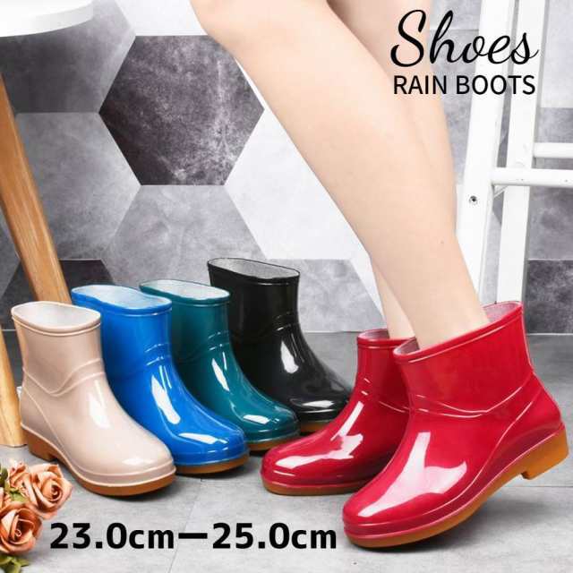 レインブーツ レディース ショート レインシューズ 雨靴 軽量 防水 歩きやすい 履きやすい 滑り止め 滑らない 軽い おしゃれ 可愛い 大人 かわいい フェミニン シンプル エナメル 光沢 無地 通勤 アウトドア 黒 赤 ブルー ベージュ グリーン 23-25cm