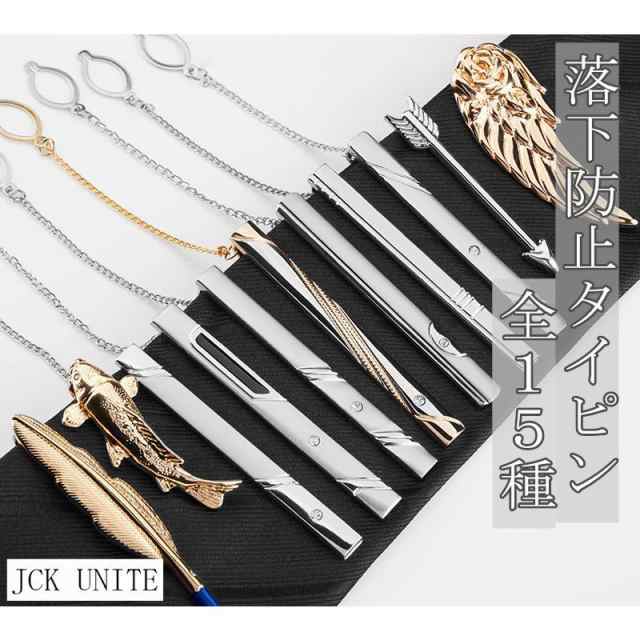 ネクタイピン メンズ オシャレ 落下防止チェーン付き ビジネス シンプル タイピン 全15種 父の日 ギフト お洒落 便利 軽量 プレゼント 贈