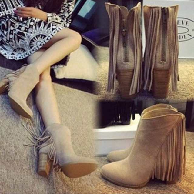 レディース 秋冬フリンジ ブーツ ハイ