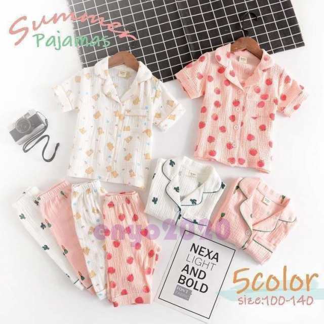 半袖子供パジャマ男女兼用キッズパジャマルームウェア前開き綿パジャマ前ボタンこどもパジャマ5色夏寝巻き部屋着100/110/120/130/140cm