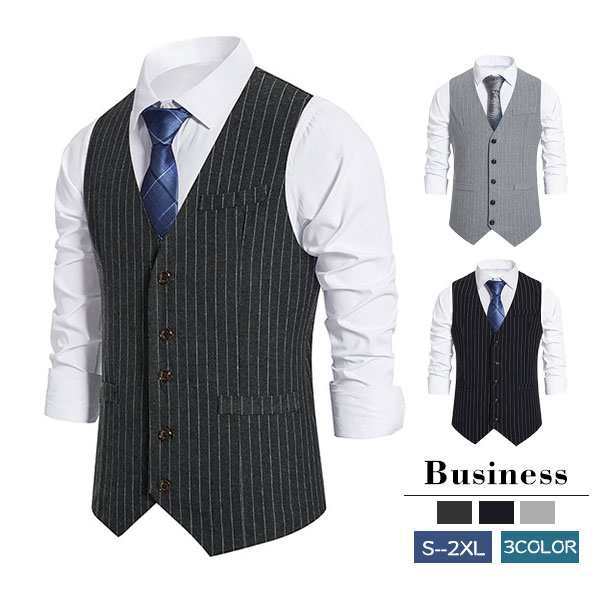 スーツベスト メンズ ベスト テーラードベスト ジレベスト ストライプ スリム 紳士服 前開き トップス Vネック ビ