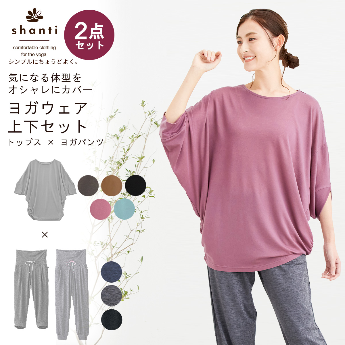 | シャンティから気になる体型をカバーできちゃう ヨガウェア上下セット(ドルマンスリーブ) | ||||||||||||