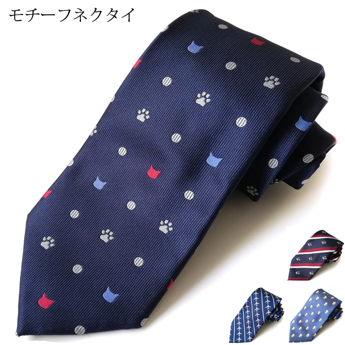 猫柄 ネクタイ おしゃれ ネコ 肉球 猫 動物柄 犬 飛行機 メガネ ビール ビジネス モチーフ 父の日 メール便送料無料