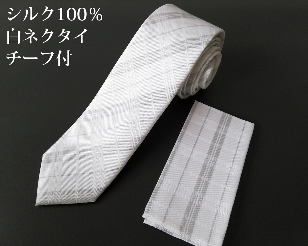 ネクタイ ナロータイ ポケットチーフ セット 結婚式 パーティ シルク メンズ 白 チェック 父の日 メール便送料無料