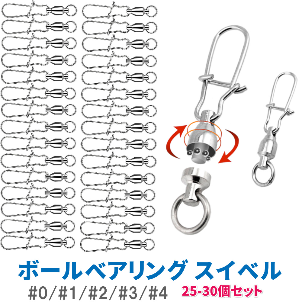 スイベル サルカン スナップ付き ボールベアリング 0号〜4号 5サイズ 30個セット 釣り具 仕掛け 海釣り ルアー 高強度 ステンレス 耐腐食