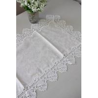 こちらは周りをレースで囲んだ45×90cmのテーブルランナー テーブル以外にもコンソールなどにも素敵です 撥水ですので水やお茶・調味料などこぼしてもすぐに拭いて頂ければ弾いて汚れません