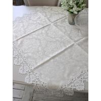 こちらは周りをレースで囲んだ90×90cmのトップクロス そのままひし形に掛けたり、テーブルクロスと重ねても素敵です 撥水ですので水やお茶・調味料などこぼしてもすぐに拭いて頂ければ弾いて汚れません