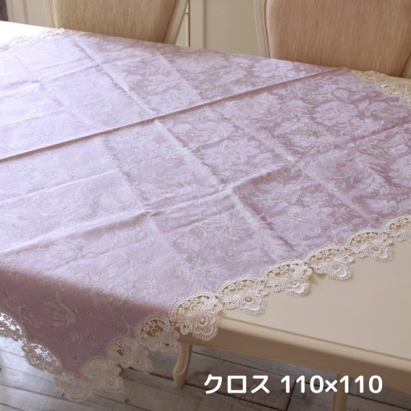 こちらは周囲にスモーキーカラーのレースがあしらわれたテーブルクロス トップクロスにもお使い頂ける縦横110cm角サイズです 撥水ですので水やお茶・調味料などこぼしてもすぐに拭いて頂ければ弾いて汚れません