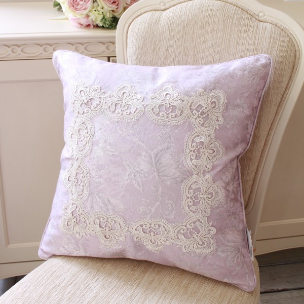 こちらは華やかなレースがあしらわれたクッションカバー 両面共布でレースは片面、ファスナー開閉仕様です 撥水ですので水やお茶・調味料などこぼしてもすぐに拭いて頂ければ弾いて汚れません