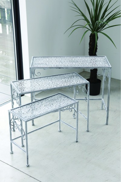 パンチングデザインが美しい、エレガントなフラワースタンド サイズ違いの3点セットです 繊細なアイアンの装飾が植物を引き立て、どんなカラーのお花とも相性抜群です 高低差をつけたディスプレイが楽しめ、立体感のあるアレンジも可能です パンチング部分が通気性に優れており、植物の蒸れを防ぐ効果もございます