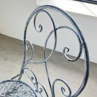 優雅な曲線が美しい、クラシカルなデザインのアイアンチェア 繊細な装飾がほどこされた背もたれと、メッシュの座面が抜け感を演出し空間に軽やかな印象を与えます
