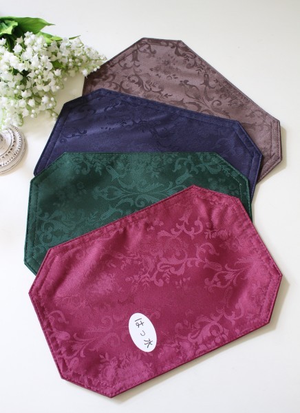 商品説明 | 撥水ジャガード織りのダマスクローズシリーズ 光沢感のある生地に同色で織られた品の良い雰囲気 こちらはランチョンより一回り小さいティーマット(八角) 2枚重ねでしっかりとしており両面共にご使用頂けます