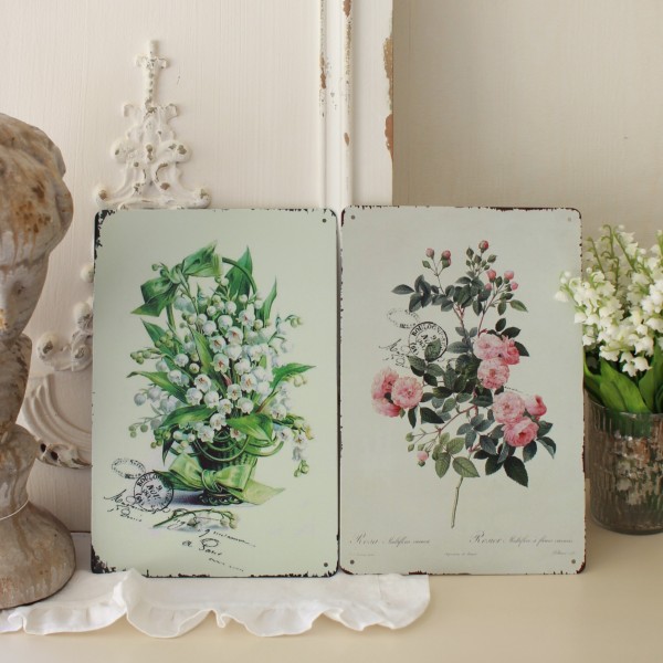 商品説明 | 海外のアンティークポストカードをプリントしたサインプレート スズラン、ローズの2柄です