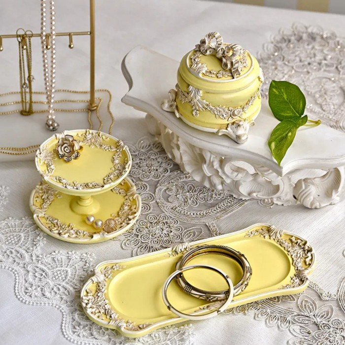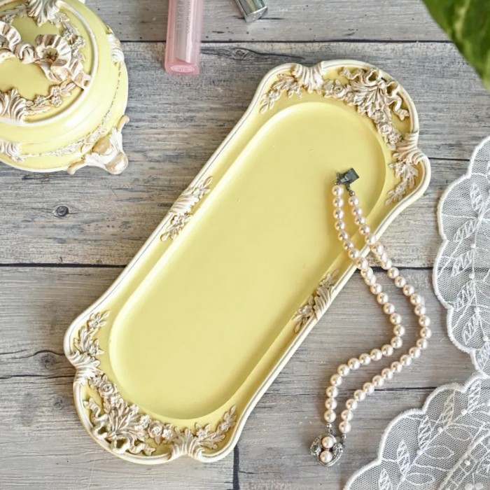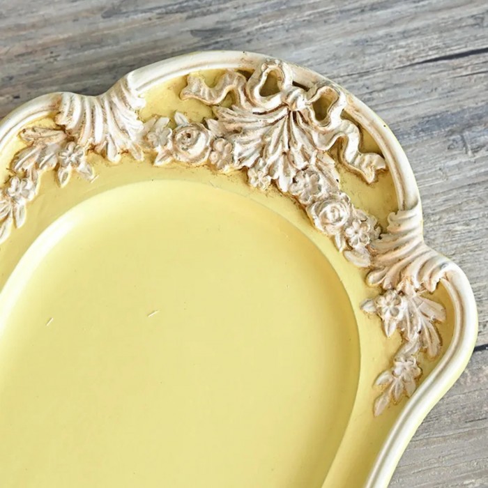 商品説明 | リボンに薔薇や花々のレリーフが美しいクラシカルで上品なパステルイエローのアクセサリートレー