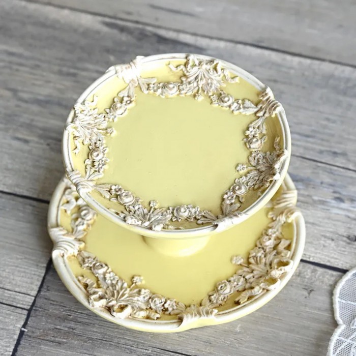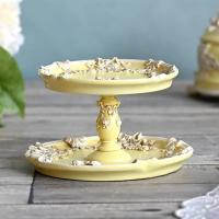 商品説明 | リボンに薔薇や花々のレリーフが美しいクラシカルで上品なパステルイエローの2段アクセサリートレー