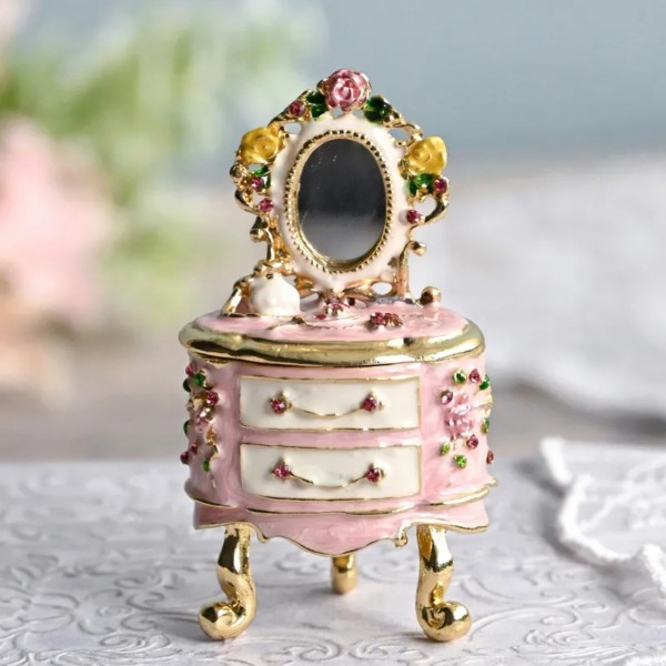 ラインストーンを装飾し、ディテールまで繊細にデザインされた高級感のあるジュエリーボックスです