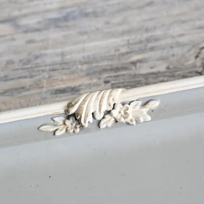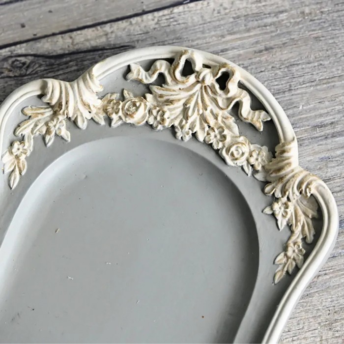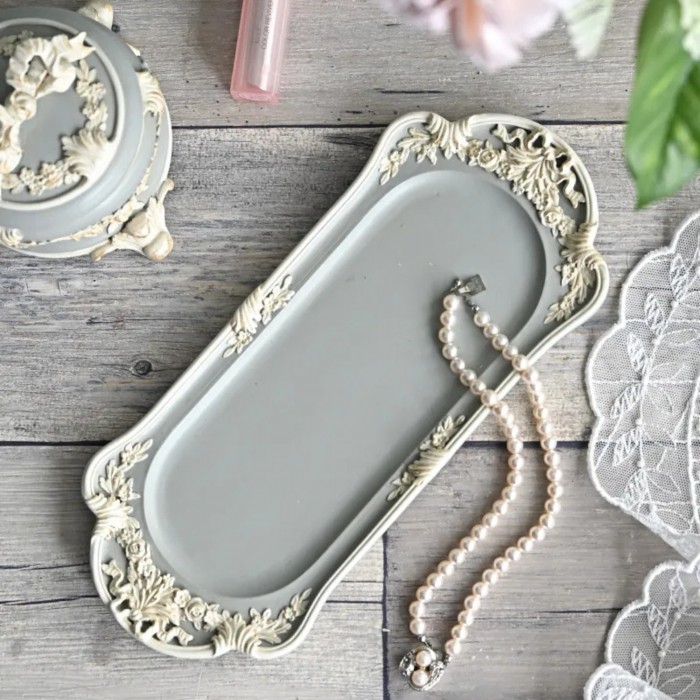 商品説明 | リボンに薔薇や花々のレリーフが美しいクラシカルで上品なグレーのアクセサリートレー