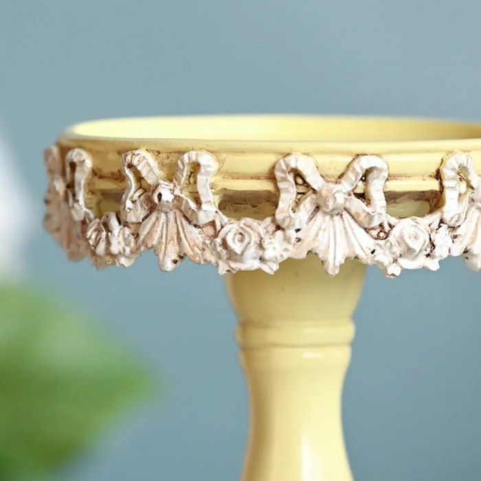 商品説明 | リボンとローズガーランドのレリーフが美しいクラシカルで上品なパステルイエローのピラーキャンドルホルダー