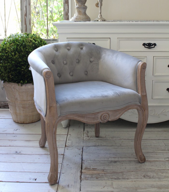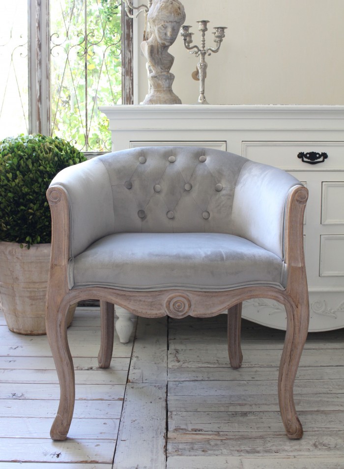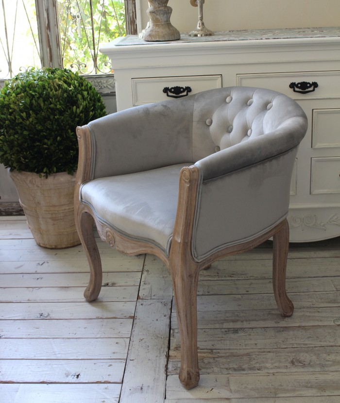 こちらは猫脚が素敵なフレームに肌触りのよいベロアグレーの生地が張られたアームソファ フレームのナチュラル感ある仕上げは温もりある雰囲気を生み出してくれます