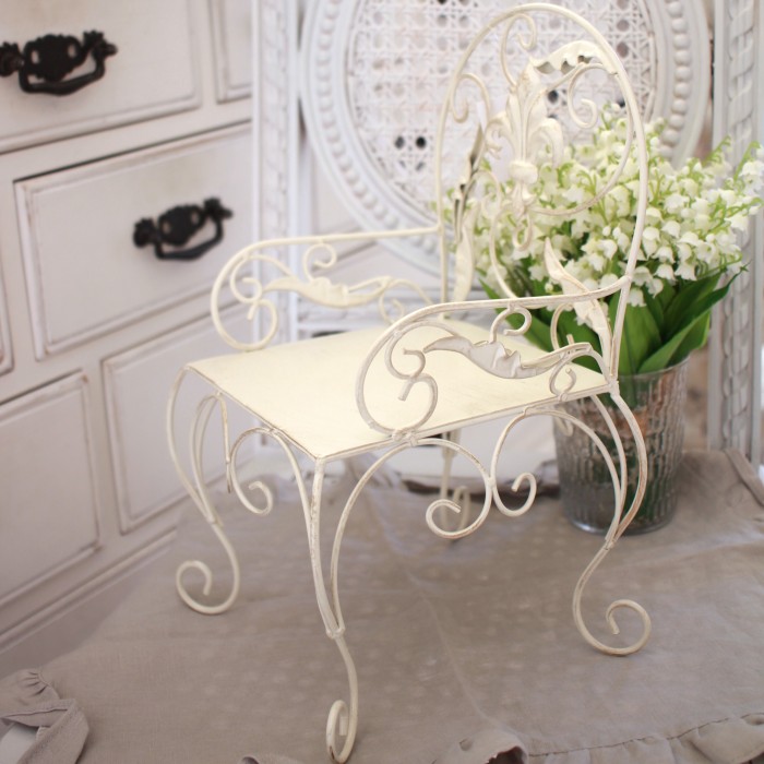 商品説明 | ヨーロピアンな雰囲気が素敵な椅子モチーフの花台 アイアン製でお色はオフホワイトにゴールドのアンティーク加工となります 植物やアレンジを置くと可愛い空間が出来上がりますよ |