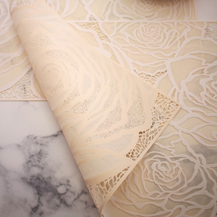 お色は5色展開でこちらは、ホワイト×ベージュ ベージュ地にホワイトのローズで上品で落ち着きのある印象です 裏側はベージュとなります