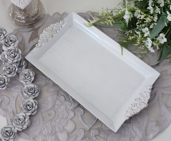 商品説明 | シャビーな雰囲気で軽量なプラスチックトレー 左右にデコラティブな飾り持ち手が付いた長方形型となります お色はアンティーク風のホワイトに光沢感のある仕上げでおしゃれな雰囲気 軽量で水洗いも可能で扱いやすいお品です