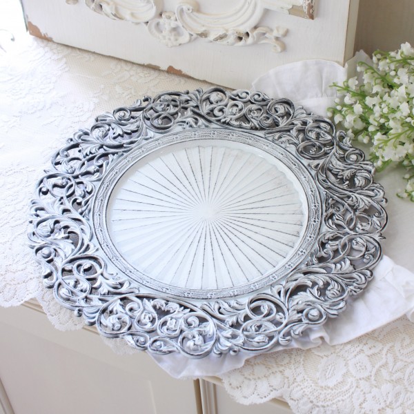 商品説明 | デコラティブな透かし彫り装飾が施された華やかなプラスチックトレー アンティーク仕上げのホワイトカラーです 軽量で水洗いも可能で扱いやすいお品です