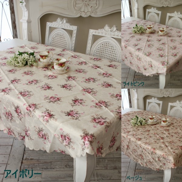 エレガントローズの撥水シリーズで同柄テーブルクロス、ランナー、ランチョンマット、ティーマットもございます シンプルなシャインローズ撥水シリーズと組み合わせても素敵ですよ