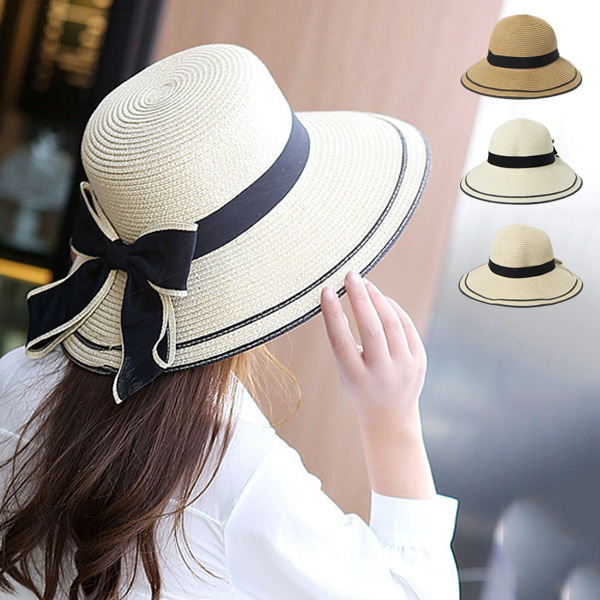 ストローハット 麦わら帽子 ツバ広 リボン付き 帽子 ハット レディース