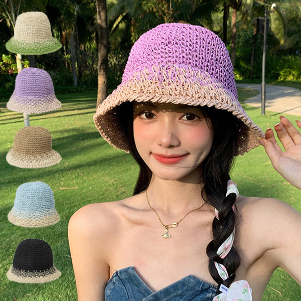 ハット ストローハット バイカラー つば広 帽子 レディース ハット ストローハット バイカラー つば広 帽子 レディース パープル グリーン ブルー ブラック カーキ