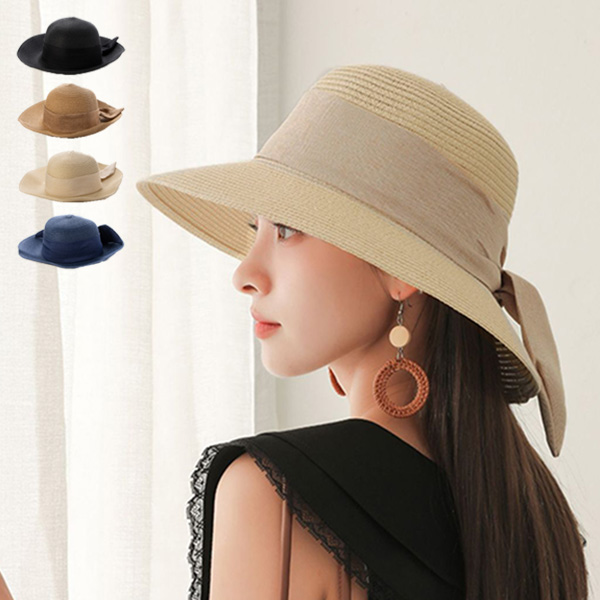 ストローハット ハット つば広 リボン 帽子 レディース ストローハット ハット つば広 リボン 帽子 レディース オフホワイト カーキ ブラック ネイビー