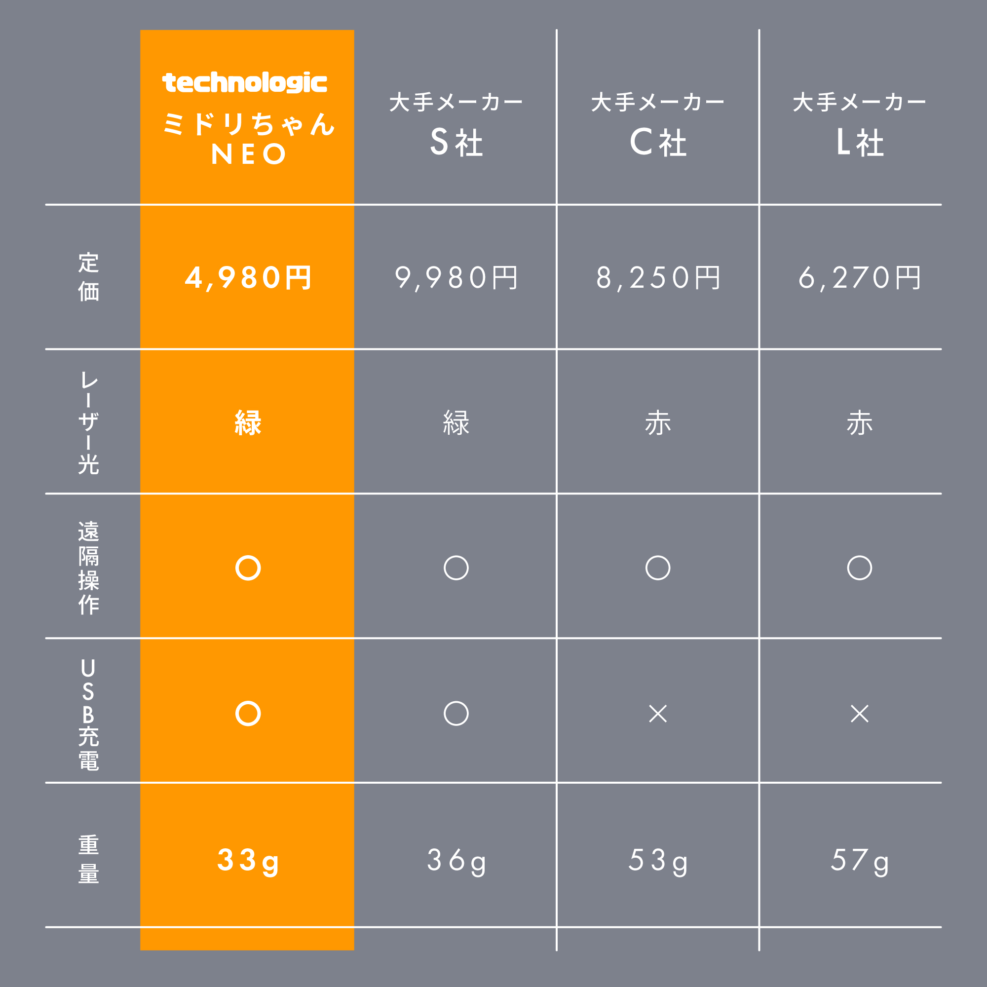 | 商品名 | テクノロジック 「 レーザーポインター ミドリちゃんNEO 」 |