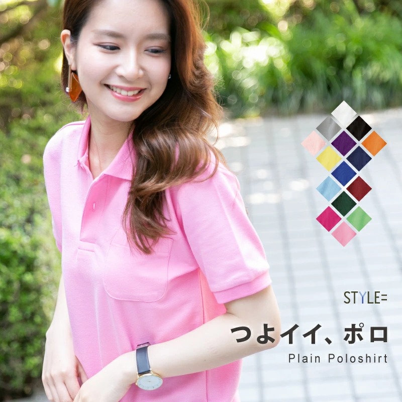 ポロシャツ レディース (ユニセックス) かわいい 半袖 メンズ ポケット 白 黒 ネイビー 無地 介護 ゴルフ クールビズ 仕事 制服