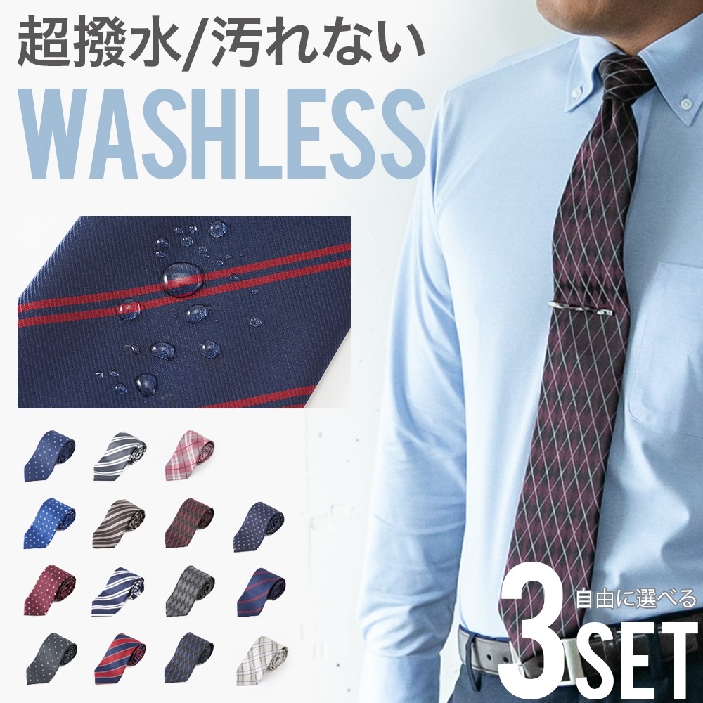 選べる3本SET洗わなくていい ネクタイ 超撥水 おしゃれ 無地 ドット ストライプ チェック ネイビー ワイン レギュラー ビジネス