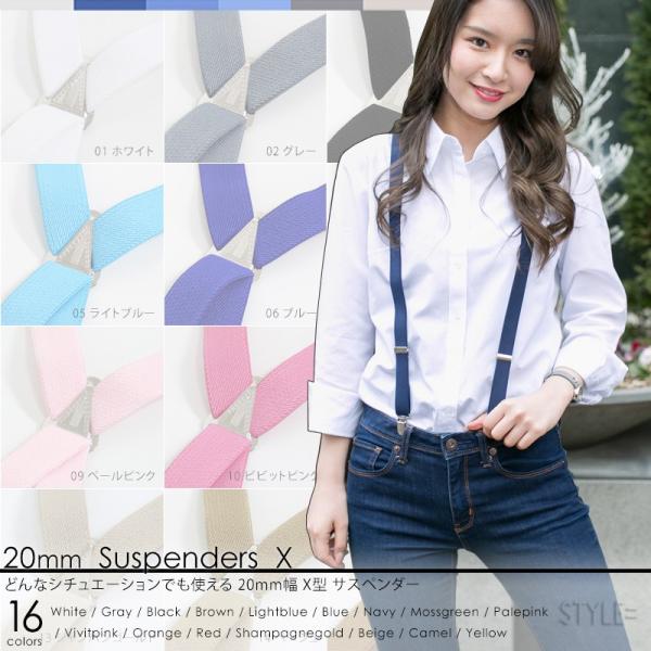 3本セット サスペンダー / メンズ & レディース 15mm幅 X型 / 全20色 / 黒 ・ 白 ・ 茶色 ・ ブルー ・サックス 他 /