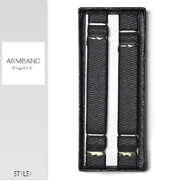 アームバンド / ヘリンボーン柄 / ブルーグレー / シャツ 袖丈の調節に / ビジネス / 日本製 (ポスト投函便)