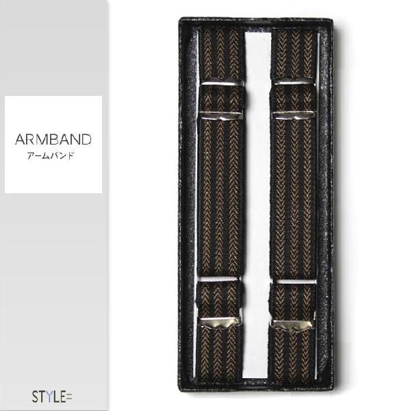 アームバンド / ストライプ柄 / ブラウン / シャツ 袖丈の調節に / ビジネス / 日本製 (ポスト投函便)