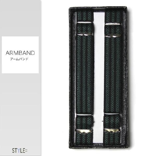 アームバンド / ストライプ柄 / グリーン (緑) / シャツ 袖丈の調節に / ビジネス / 日本製 (ポスト投函便)