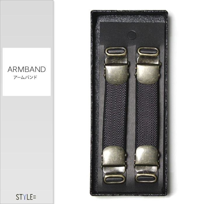 アームバンド / アームクリップ (アームガーター) / ヘリンボーン柄 / ブルーグレー / 袖丈の調節に / ビジネス / 日本製 (ポスト投函便)