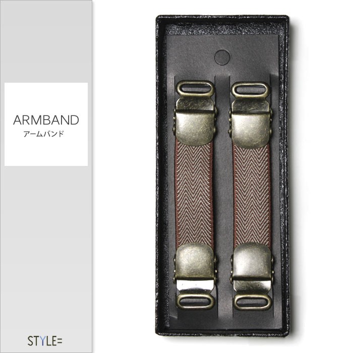 アームバンド / アームクリップ (アームガーター・シャツガーター) / ヘリンボーン柄 / ブラウン / 袖丈の調節に / ビジネス / 日本製(ポスト投函便送料無料)