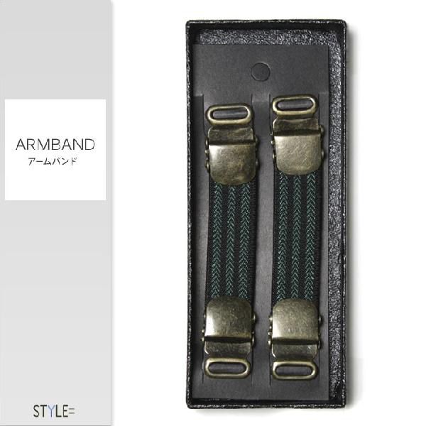 アームバンド / アームクリップ (アームガーター・シャツガーター) / ストライプ柄 / グリーン / 袖丈の調節に / ビジネス / 日本製(ポスト投函便送料無料)